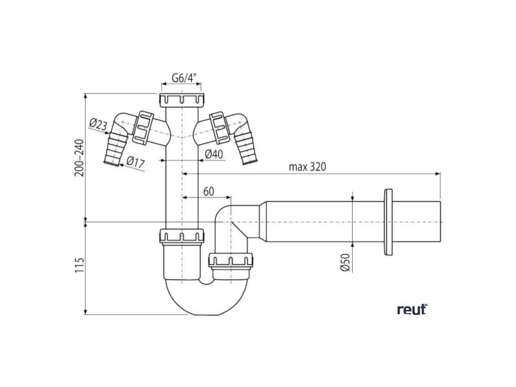 Sifón rúrkový s prevlečnou maticou 6/4" a dvoma prípojkami