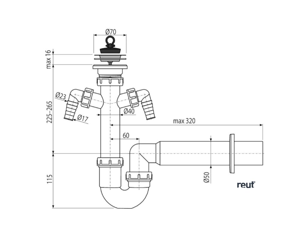 - obsah balenia: telo sifónu s prípojkami, zátka z PVC, nerezová mriežka výpuste, rozeta plastová