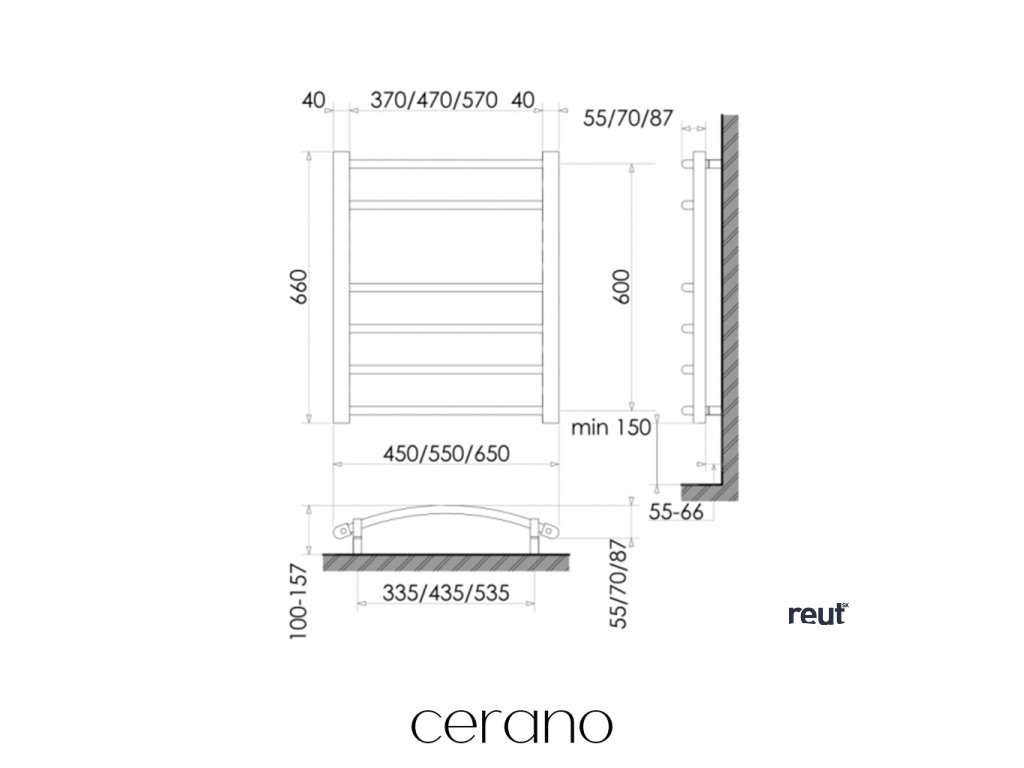 CERANO - Elektrický sušiak uterákov Luca - 97 W - čierna matná - 660x550 mm LIV-EG-6-55-X