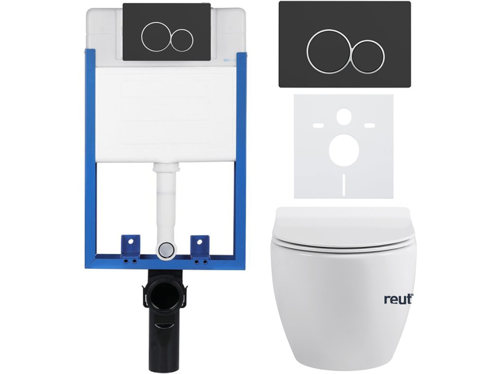 CERANO - Kompletný podomietkový WC set Lite/Dure - biela lesklá - WC tlačidlo Duo, čierna matná - na zamurovanie - 51,5x35 cm CER-8050BD84280
