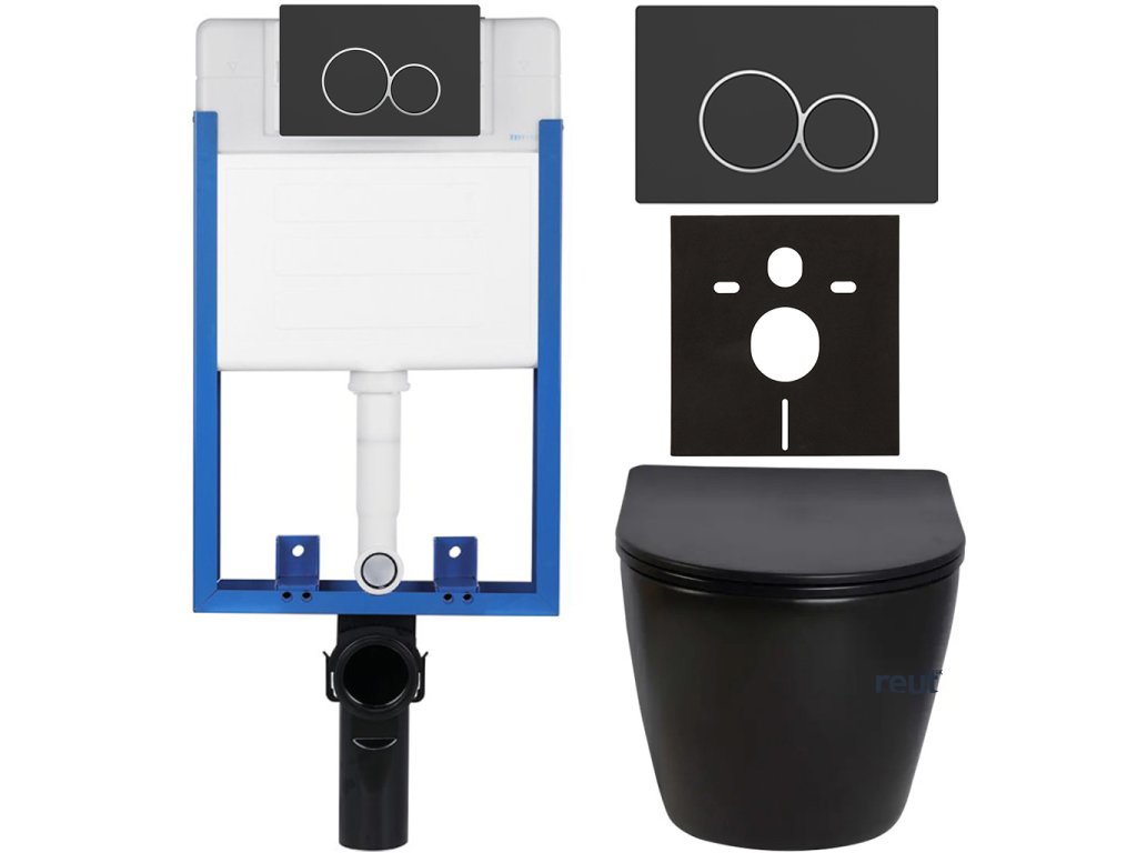 CERANO - Kompletný podomietkový WC set Lite/Verde - čierna lesklá - WC tlačidlo Duo, čierna matná - na zamurovanie - 49x36 cm CER-8050BD84224
