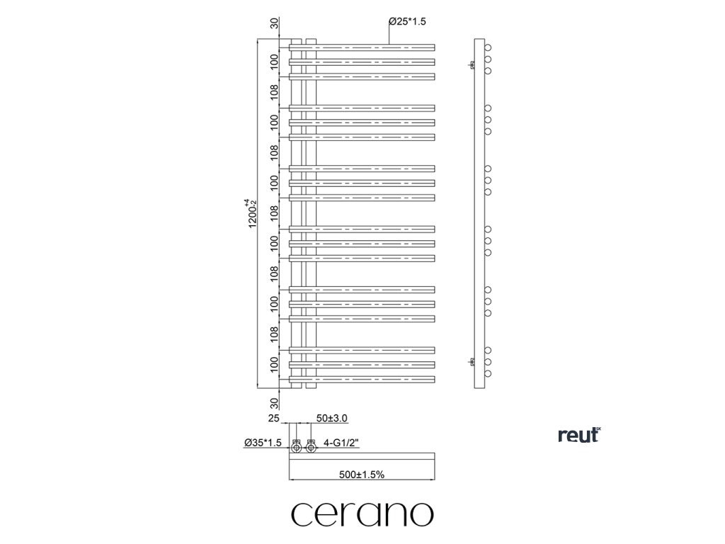 Štandardné pripojenie radiátora je 1/2", čo zaisťuje kompatibilitu s ventilmi a prípojnými sadami Cerano, aj od iných výrobcov. Uistite sa, že všetky súčasti zodpovedajú tomuto priemeru, aby bola zaistená bezpečná a efektívna prevádzka.