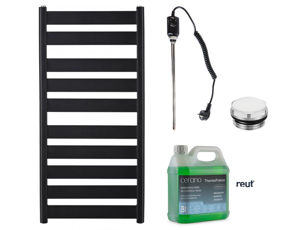 CERANO - Kúpeľňový elektrický radiátorový set Marco - 600W - čierna matná - 1125x550 mm CER-680516