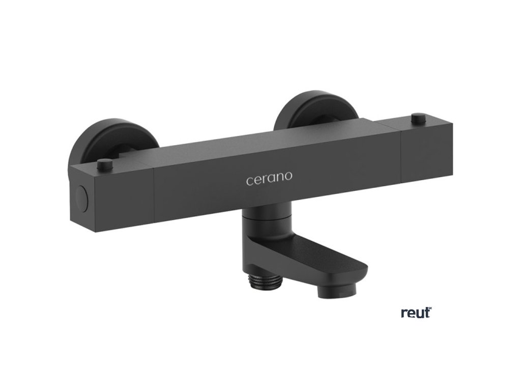CERANO - Vaňová nástenná batéria Lorena - termostatická - otočný výtok - čierna matná CER-8050BD7764
