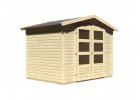 Drevený domček k stene, hrúbka steny 19 mm, rozmery š 238 x d 181 cm, vonkajšia plocha domčeka 4,3 m2.