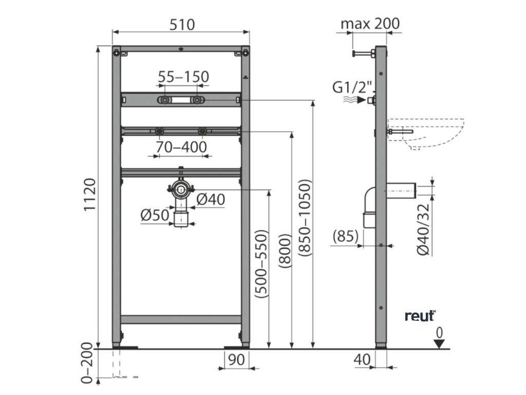 Alcadrain Predstenové inštalácie Predstenová inštalácia na umývadlo a nástenné armatúry, stavebná výška 1,12 m A104A/1120