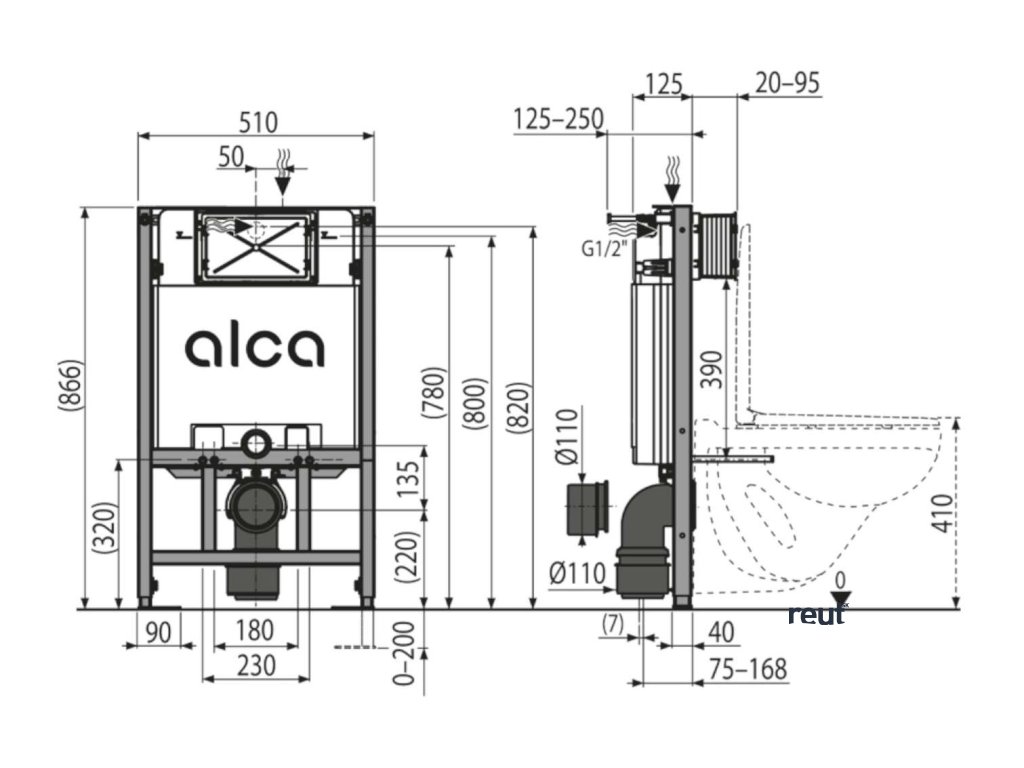 Alcadrain Predstenové inštalácie Predstenová inštalácia na závesné WC, dávkovač tabliet, pre suchú inštaláciu, stavebná výška 0,86 m AM101/850