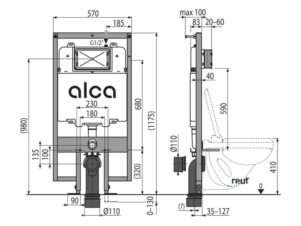 Alcadrain Predstenové inštalácie Predstenová inštalácia na závesné WC, pre suchú inštaláciu, stavebná výška 1,17 m AM1101/1200