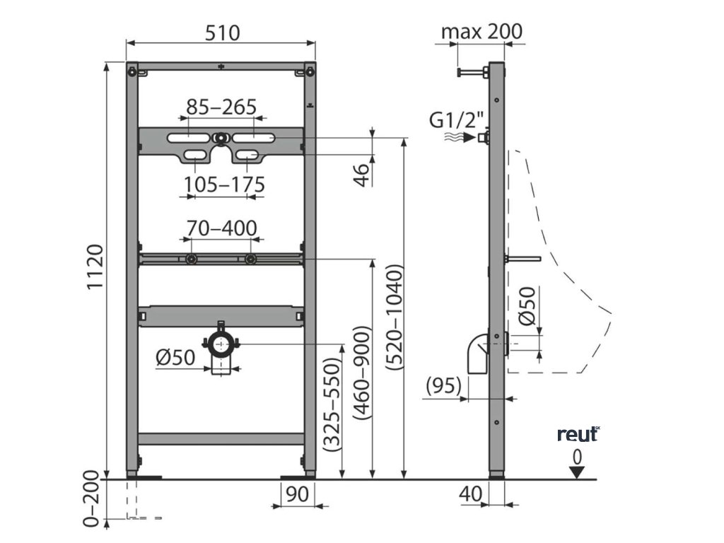Alcadrain Predstenové inštalácie Predstenová inštalácia pre pisoár, stavebná výška 1,12 m A107/1120