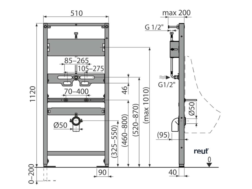 Alcadrain Predstenové inštalácie Predstenová inštalácia pre pisoár a senzor, stavebná výška 1,12 m A107S/1120