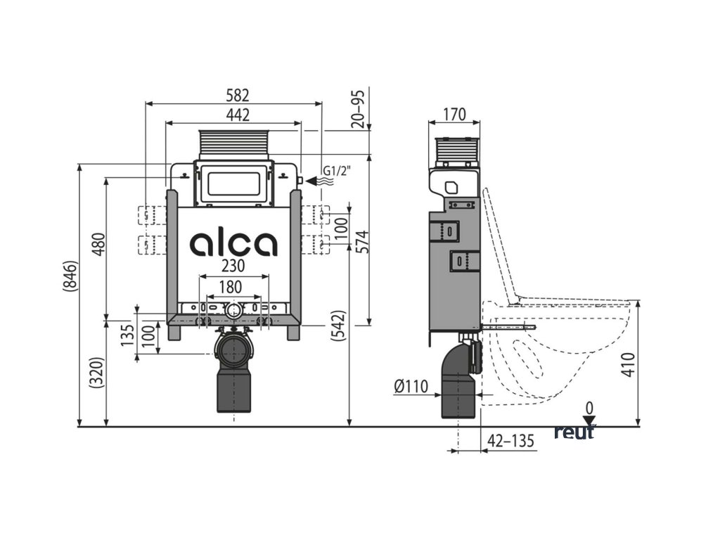 Alcadrain Predstenové inštalácie Predstenová inštalácia Renovmodul na závesné WC, s ovládaním zhora/spredu, dávkovač tabliet, k zamurovaniu, stavebná výška 0,85 m AM119/850