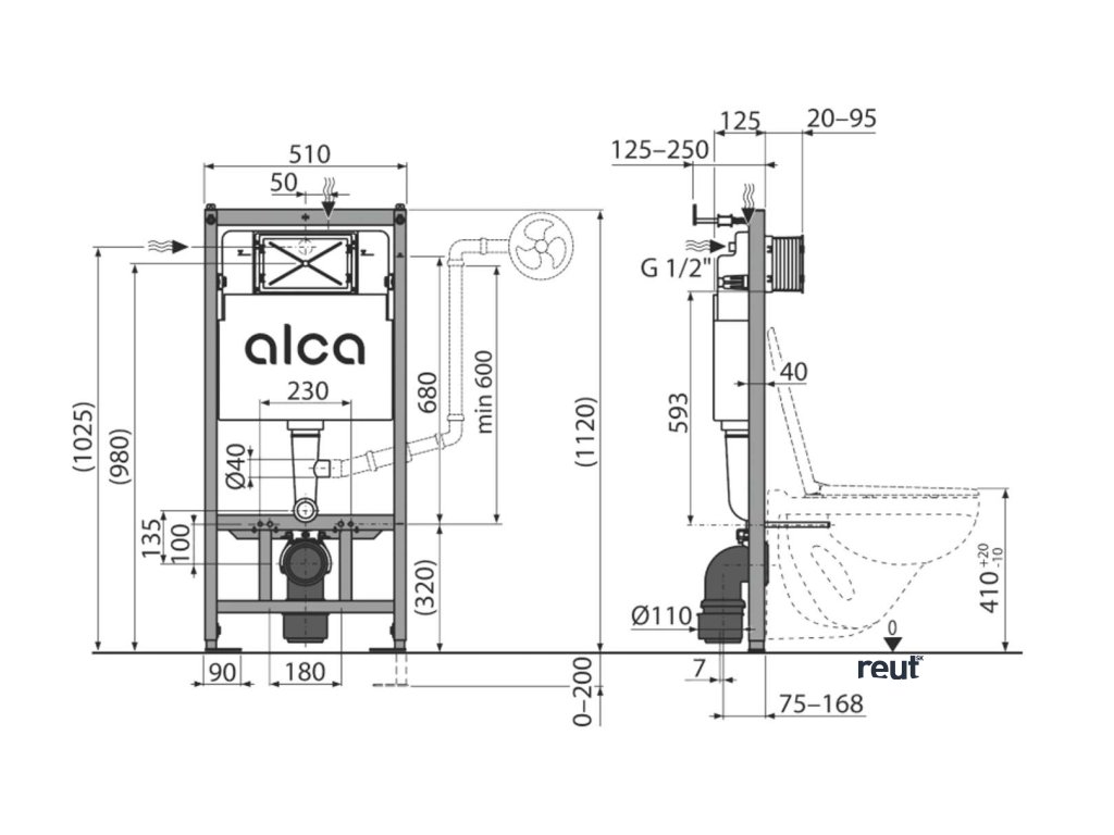 Alcadrain Predstenové inštalácie Predstenový inštalačný modul Ecology, odsávanie zápachu, Sadromodul AM101/1120E
