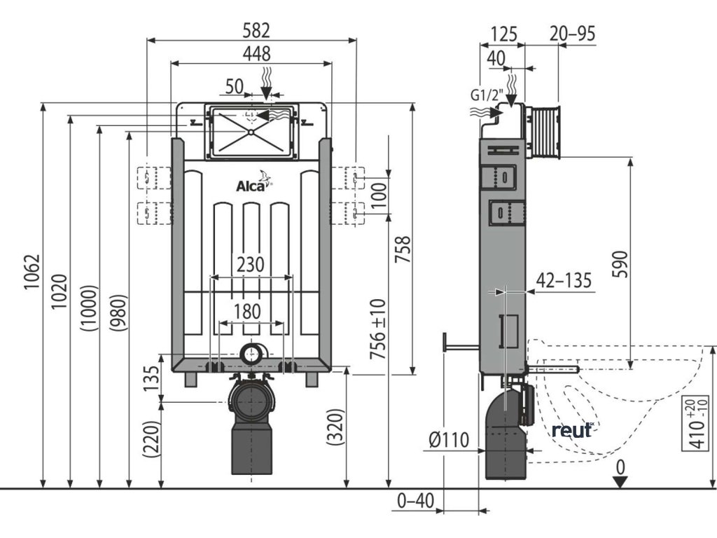 Alcadrain Predstenové inštalácie Predstenový inštalačný prvok Renovmodul, na zamurovanie AM115/1000
