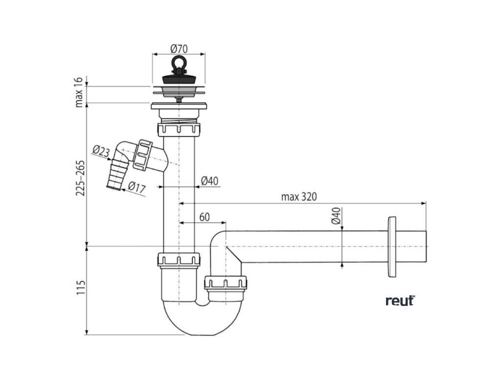 Alcadrain Sifóny Drezový sifón, priemer 70 mm, s prípojkou, plast A810-DN40