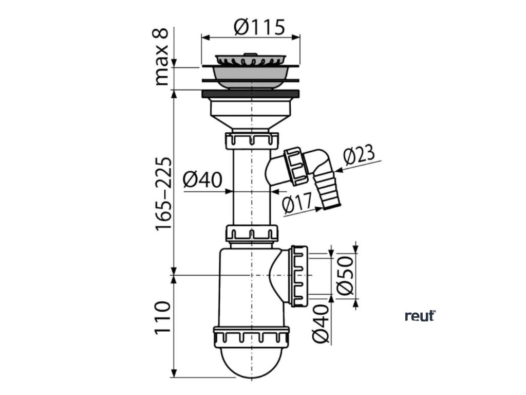 Alcadrain Sifóny Drezový sifón, s prípojkou, plast A446P-DN50/40