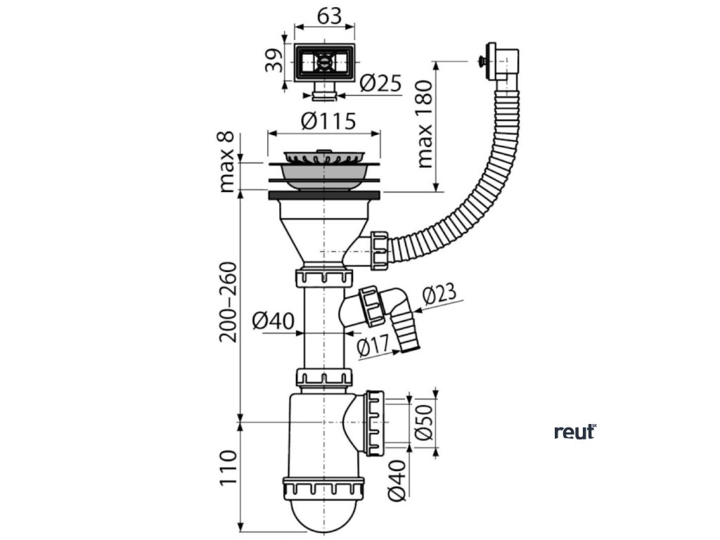 Alcadrain Sifóny Drezový sifón, s prípojkou, s flexi prepadom, plast A447P-DN50/40