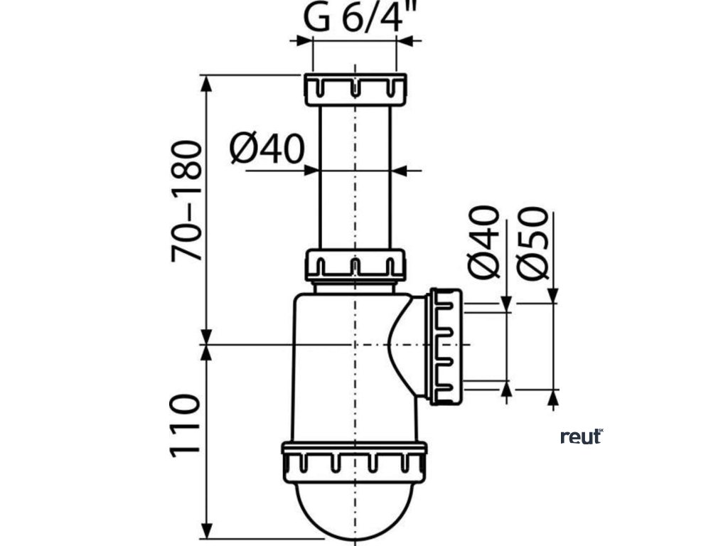 Alcadrain Sifóny Sifón drezový s prevlečenou maticou G6/4" A443-DN50/40