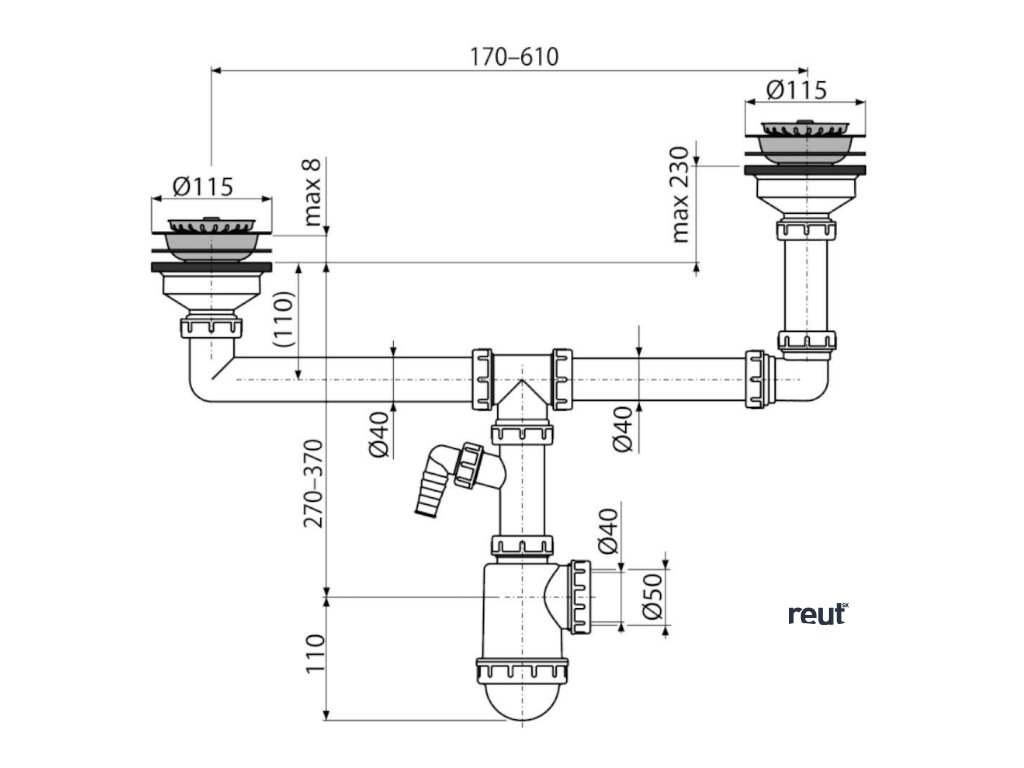 Alcadrain Sifóny Sifón pre dvojdrez, priemer 115 mm, dvojúrovňový, s prípojkou, plast A454P