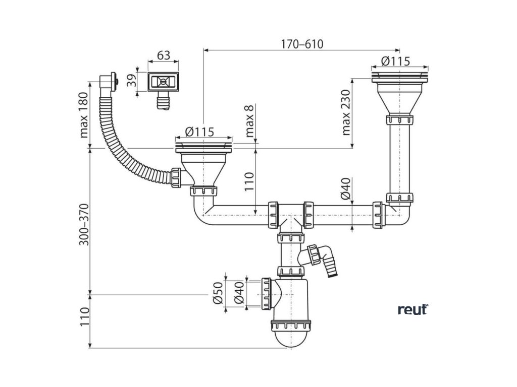 Alcadrain Sifóny Sifón pre dvojdrez, priemer 115 mm, dvojúrovňový, s prípojkou, plast A456P