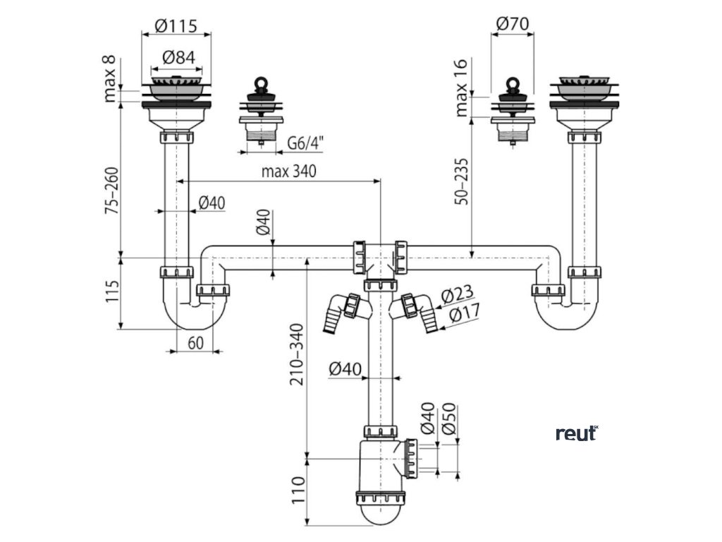 Alcadrain Sifóny Sifón pre dvojdrez, univerzálny, s 2 prípojkami, plast A8000