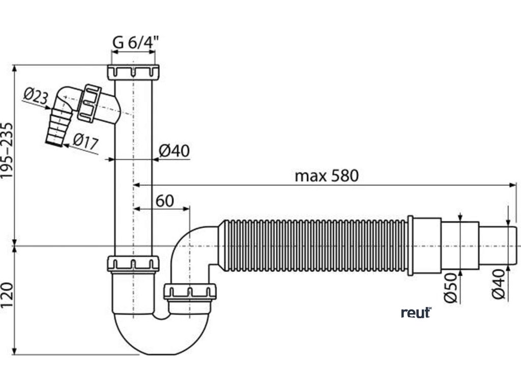 Alcadrain Sifóny Sifón rúrkový priemer 50/40 mm s prevlečnou maticou a prípojkou, flexi hadica A83-DN50/40