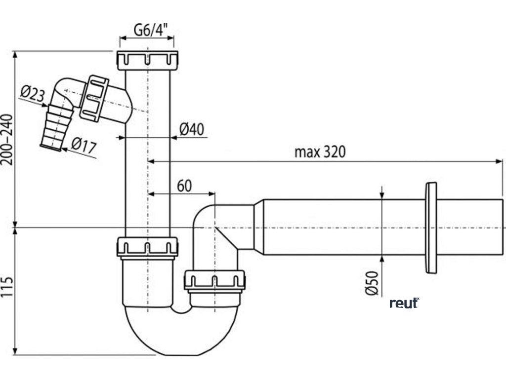 Alcadrain Sifóny Sifón rúrkový priemer 50 mm s prevlečnou maticou a prípojkou A81-DN50