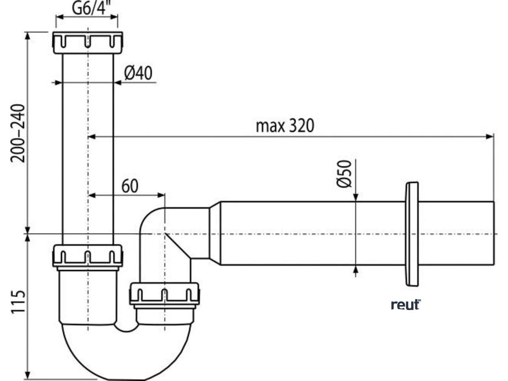 Alcadrain Sifóny Sifón rúrkový priemer 50 mm s prevlečnou maticou A80-DN50