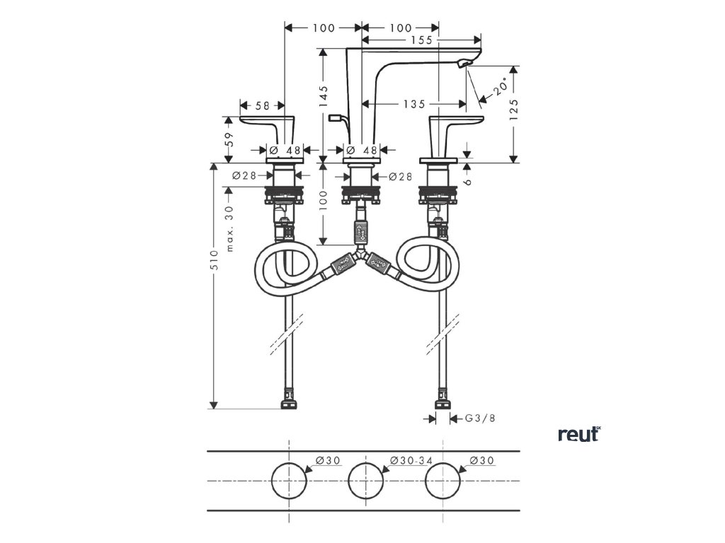 Axor Citterio C Umývadlová batéria s výpusťou, 3-otvorová inštalácia, EcoSmart, chróm 49060000-AX