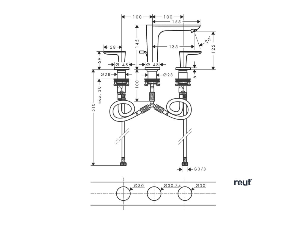 Axor Citterio C Umývadlová batéria s výpusťou, 3-otvorová inštalácia, EcoSmart, matná čierna 49060670-AX