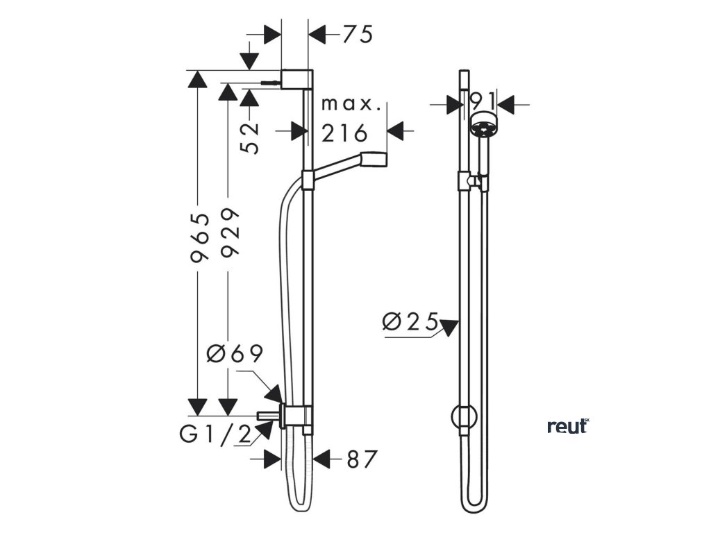 Axor One Set sprchovej hlavice, tyče a hadice, 2 prúdy, EcoSmart, kefovaná mosadz 48791950-AX