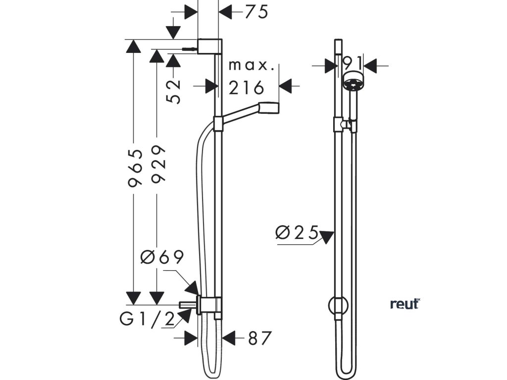 Axor One Set sprchovej hlavice, tyče a hadice, 2 prúdy, EcoSmart, matná čierna 48791670-AX