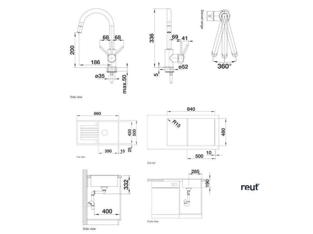 Blanco Set drezu Zia 5 S a batérie Mida S, sivá vulkán/sivá vulkán SET 10-D 25 MIDA-S sedvu