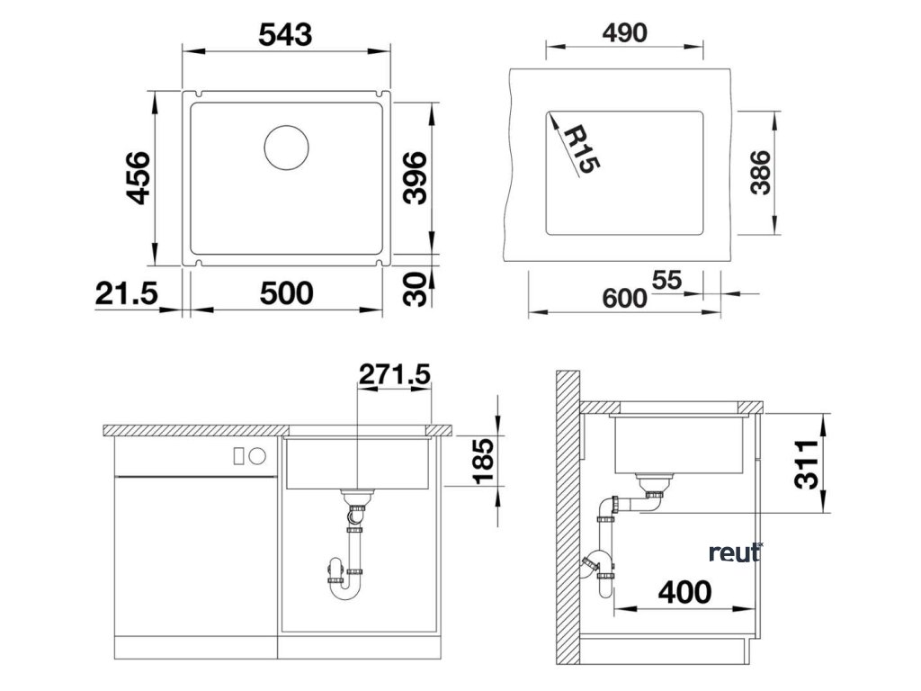 Blanco Subline 500 Keramický drez, 54x46 cm, InFino, bazalt 523739