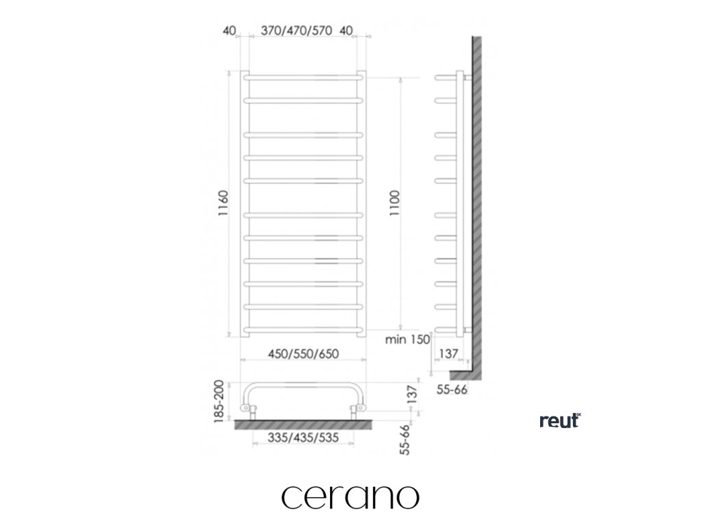 CERANO - Elektrický sušiak uterákov Alessandro - 228 W - čierna matná - 1160x550 mm LIV-EU-11-55