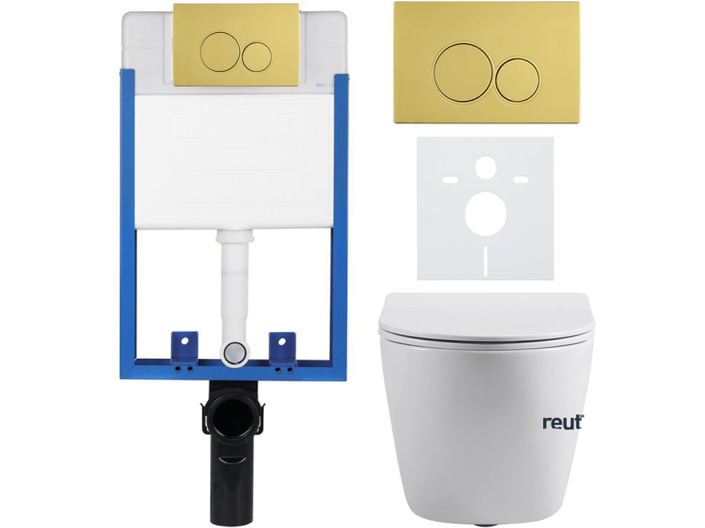 CERANO - Kompletný podomietkový WC set Lite/Cesso - biela lesklá - WC tlačidlo Duo. zlatá - na zamurovanie - 49x36 cm CER-8050BD84338