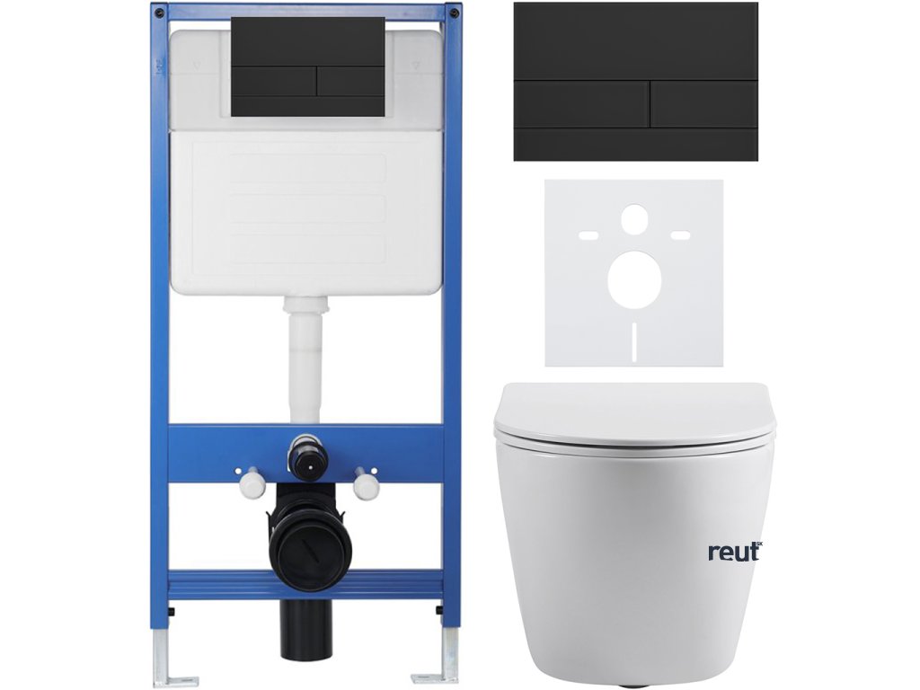 CERANO - Kompletný podomietkový WC set Lite/Cesso - biela lesklá - WC tlačidlo Line, čierna matná - predstenová inštalácia - 49x36 cm CER-8050BD84359