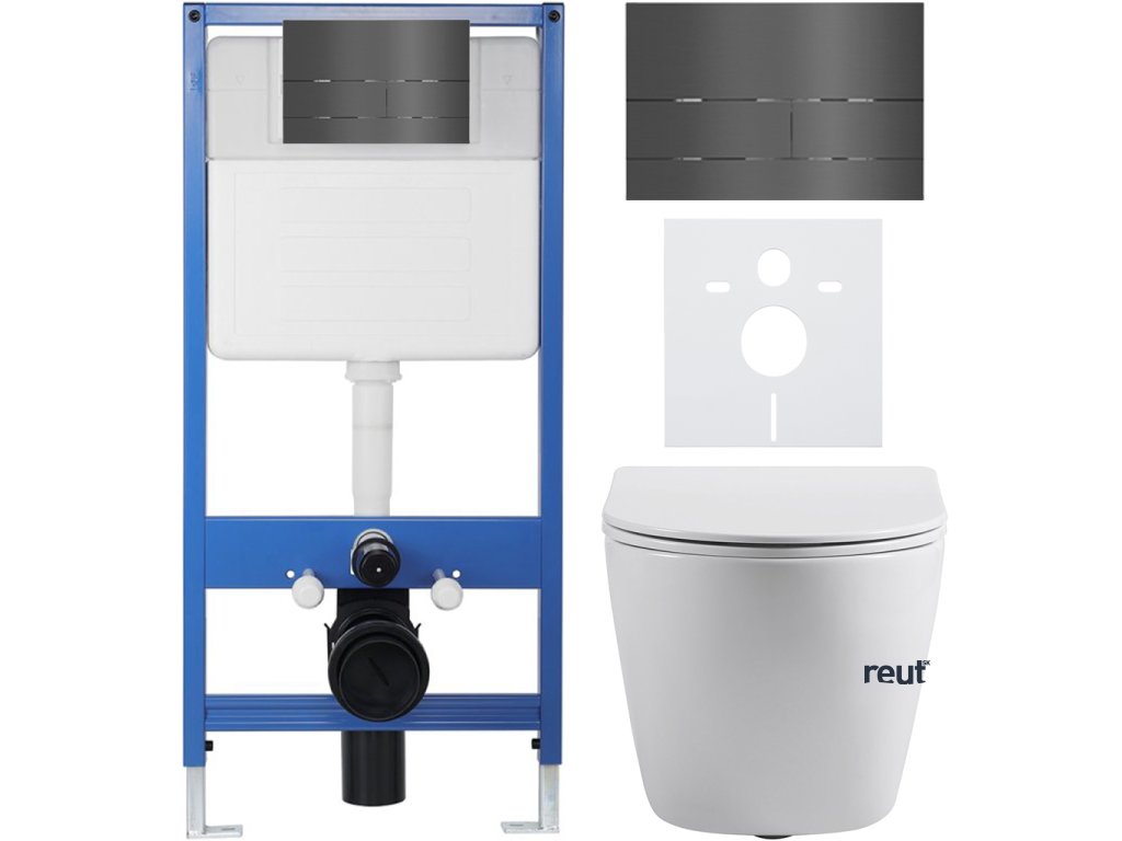 CERANO - Kompletný podomietkový WC set Lite/Cesso - biela lesklá - WC tlačidlo Line. tmavo šedá - predstenová inštalácia - 49x36 cm CER-8050BD84365