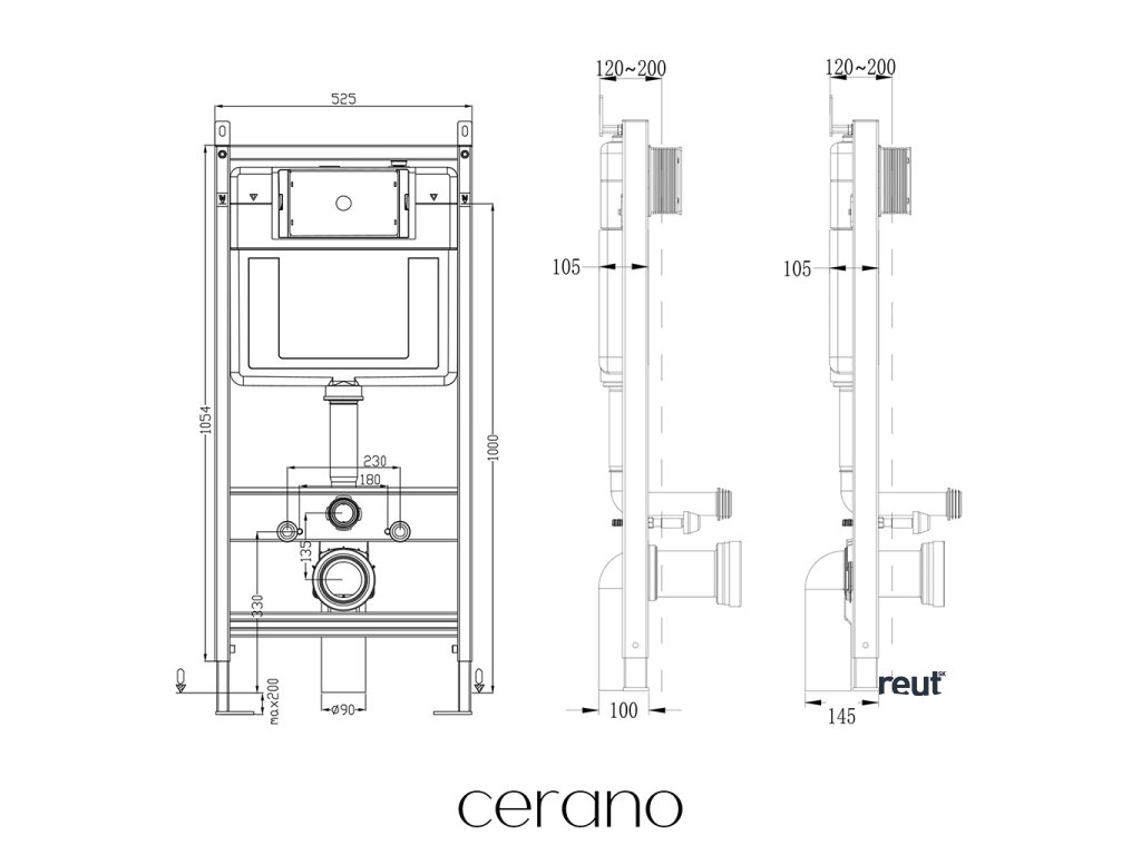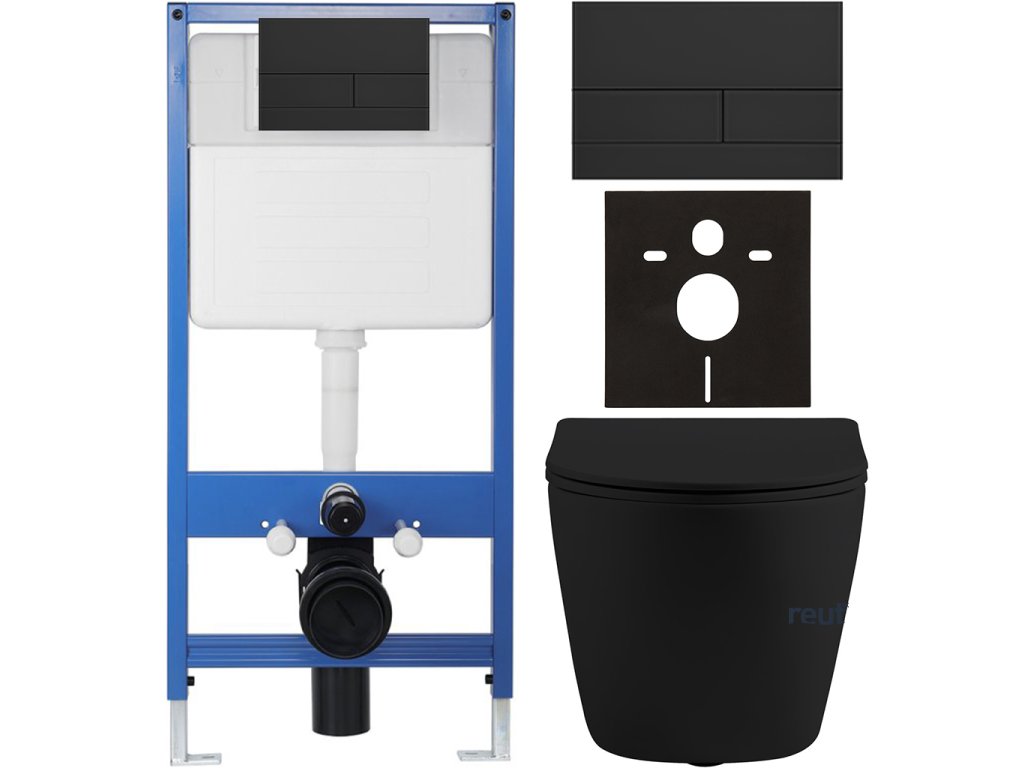 CERANO - Kompletný podomietkový WC set Lite/Cesso - čierna matná - WC tlačidlo Line, čierna matná - predstenová inštalácia - 49x36 cm CER-8050BD84379
