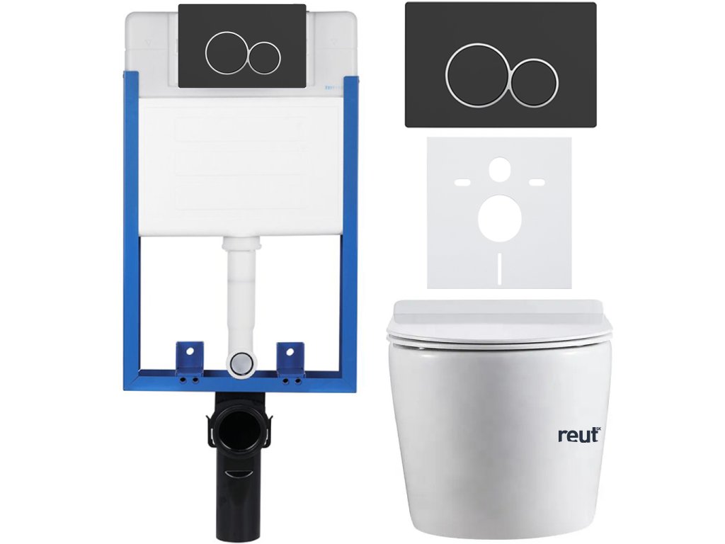 CERANO - Kompletný podomietkový WC set Lite/Felci - biela lesklá - WC tlačidlo Duo, čierna matná - na zamurovanie - 52,5x36 cm CER-8050BD84316
