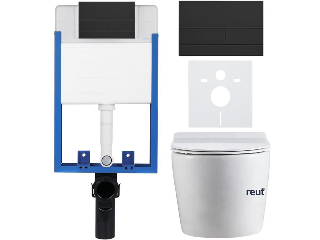 CERANO - Kompletný podomietkový WC set Lite/Felci - biela lesklá - WC tlačidlo Line, čierna matná - na zamurovanie - 52,5x36 cm CER-8050BD84324