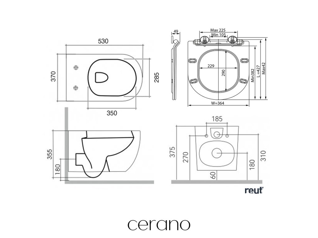CERANO - Kompletný podomietkový WC set Lite/Felci - biela lesklá - WC tlačidlo Line, zlatá - predstenová inštalácia - 52,5x36 cm CER-8050BD84331