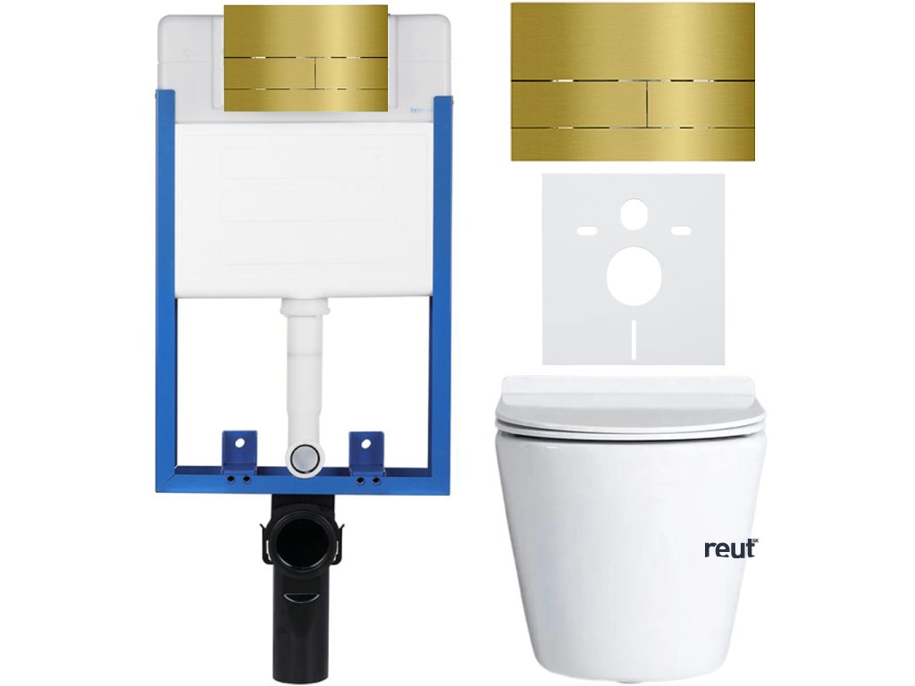 CERANO - Kompletný podomietkový WC set Lite/Norbi - biela lesklá - WC tlačidlo Line, zlatá - na zamurovanie - 48,5x36,5 cm CER-8050BD84312