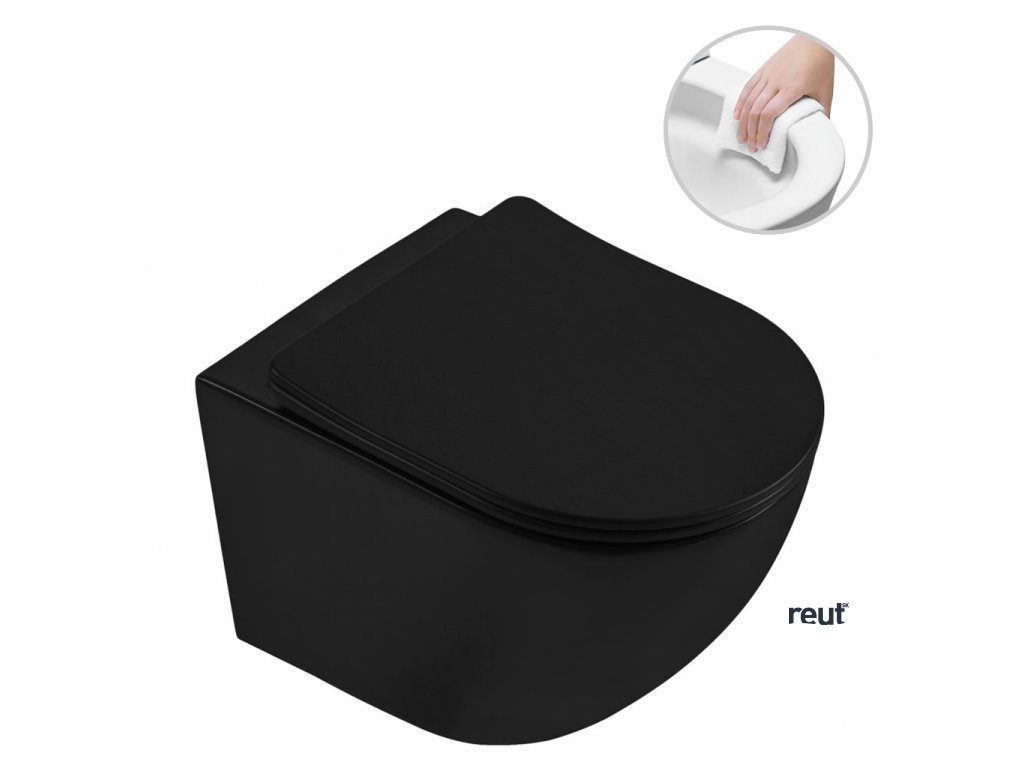 CERANO - Kompletný podomietkový WC set Verde - čierna matná - WC tlačidlo Classic, čierne matné - predstenová inštalácia - 49x36 cm CER-8050BD37