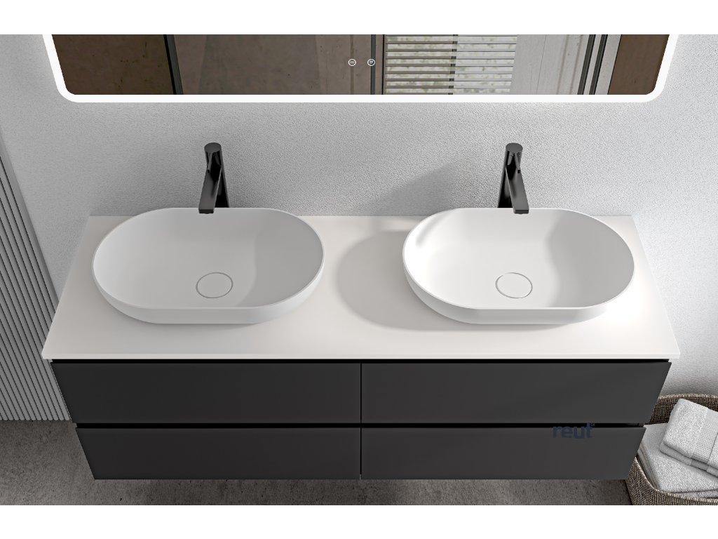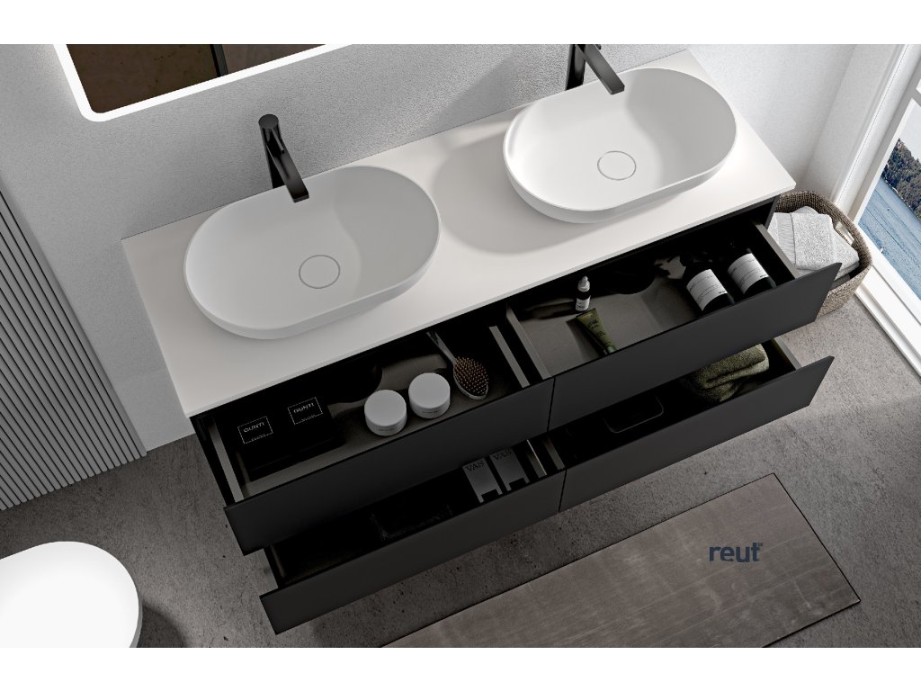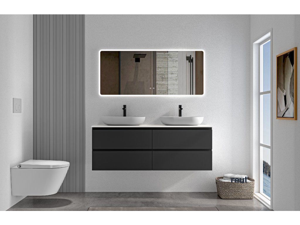 CERANO - Kúpeľňová skrinka Carole s doskou pod umývadlo z liateho mramoru Elanys - 12 mm - čierna matná - 140x49,8x46,5 cm CER-8050BD85517