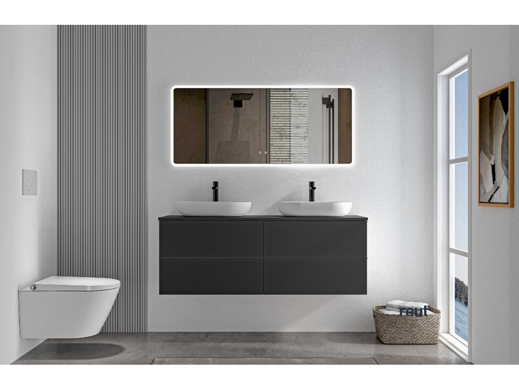 CERANO - Kúpeľňová skrinka pod umývadlo s úchytkou/doskou pod umývadlo Velora - 18 mm - čierna matná, čierna úchytka - 158x53x45, 2 cm CER-665194
