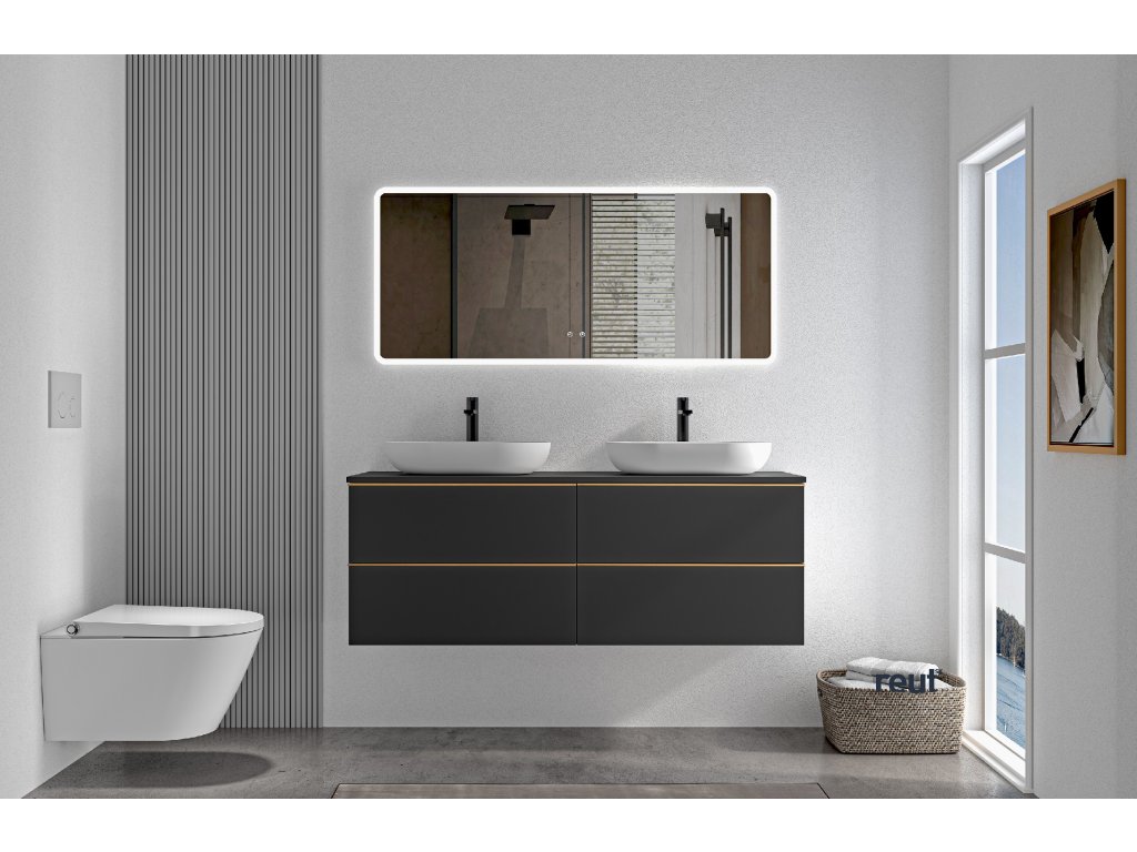 CERANO - Kúpeľňová skrinka pod umývadlo s úchytkou/doskou pod umývadlo Velora - 18 mm - čierna matná, zlatá úchytka - 138x53x45, 2 cm CER-665203