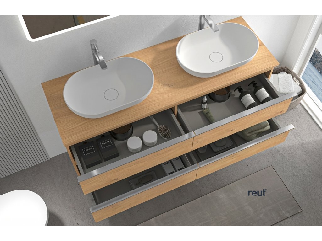 CERANO - Kúpeľňová skrinka pod umývadlo s úchytkou/doskou pod umývadlo Velora - 18 mm - dub medový, chrómová úchytka - 158x53x45, 2 cm CER-665218