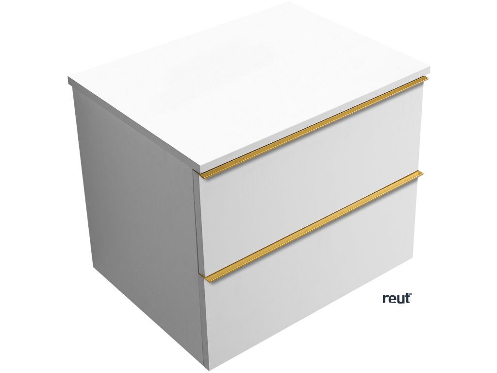 CERANO - Kúpeľňová skrinka pod umývadlo Velora s úchytkou/doskou z liateho mramoru Elanys - 12 mm - biela matná, zlatá úchytka - 69x53x46 cm CER-679422