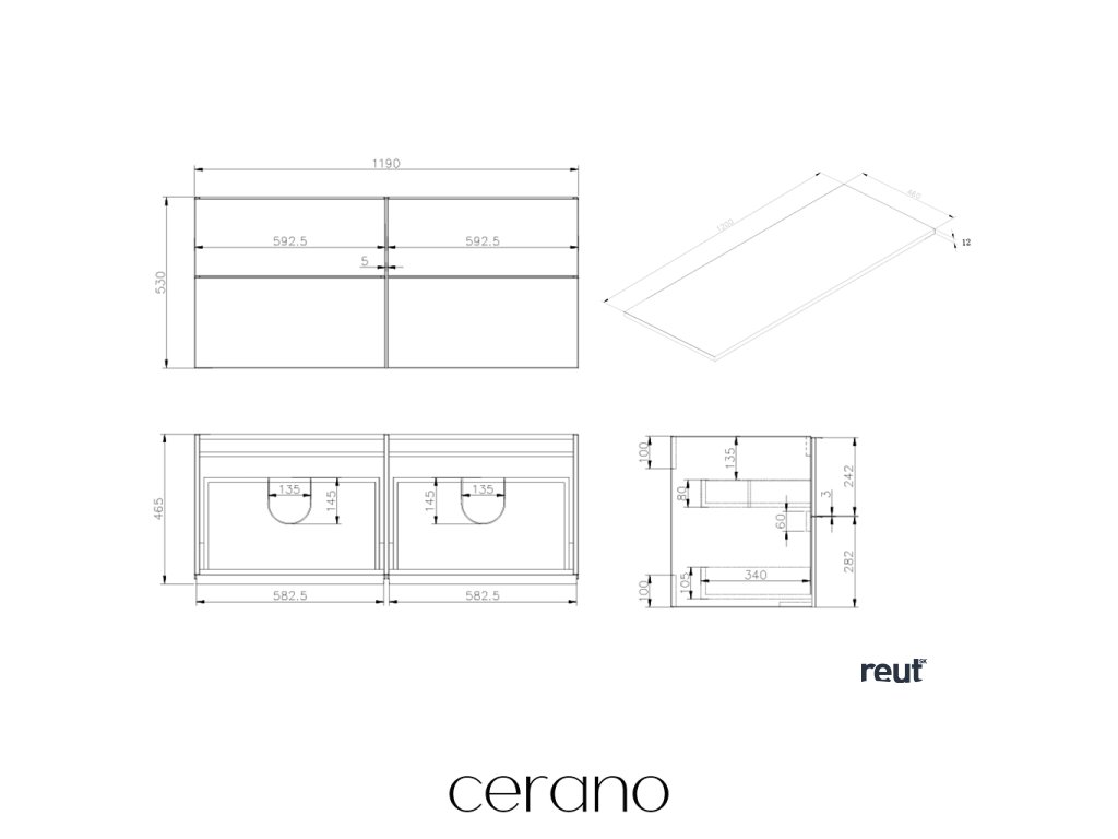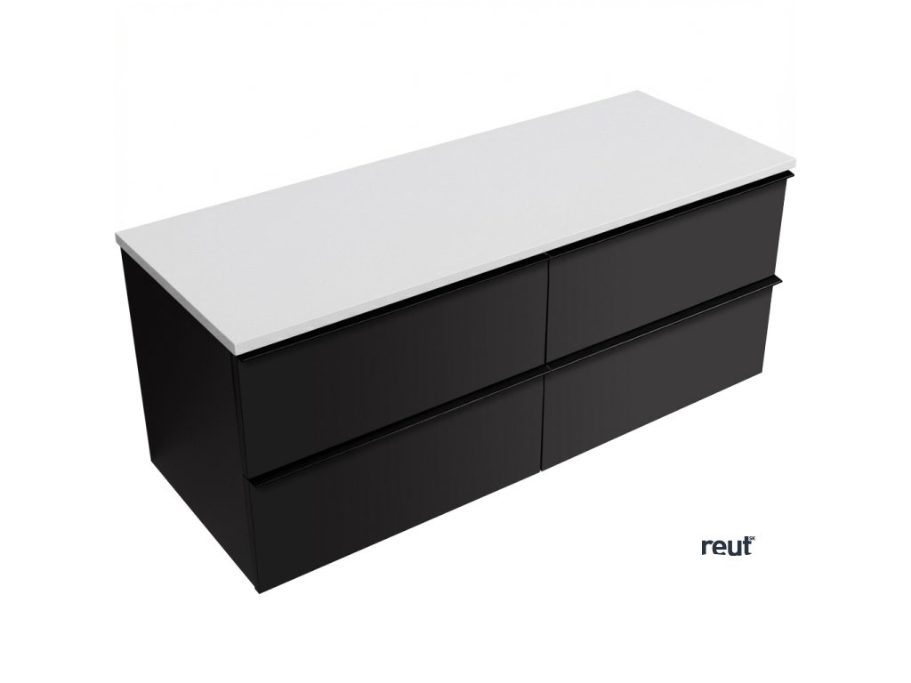 CERANO - Kúpeľňová skrinka pod umývadlo Velora s úchytkou/doskou z liateho mramoru Elanys - 12 mm - čierna matná, čierna úchytka - 119x53x45, 2 cm CER-679425