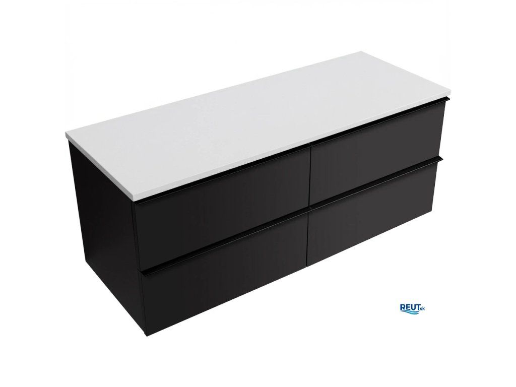 CERANO - Kúpeľňová skrinka pod umývadlo Velora s úchytkou/doskou z liateho mramoru Elanys - 12 mm - čierna matná, čierna úchytka - 138x53x45, 2 cm CER-679426